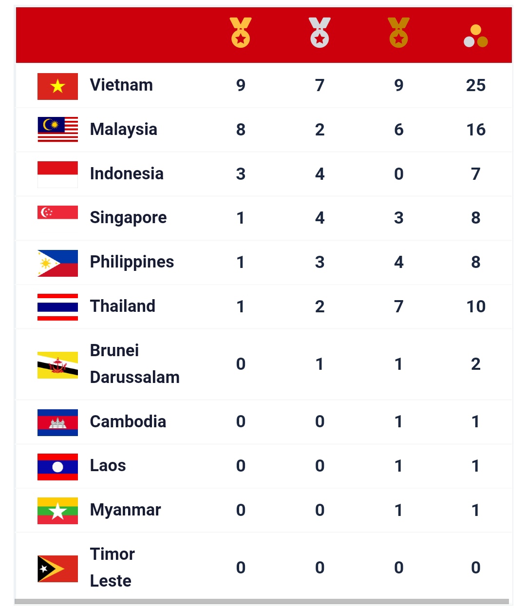 Kedudukan Pungutan Pingat Sukan Sea 2021 2022 Malaysia Terkini Arenasukan